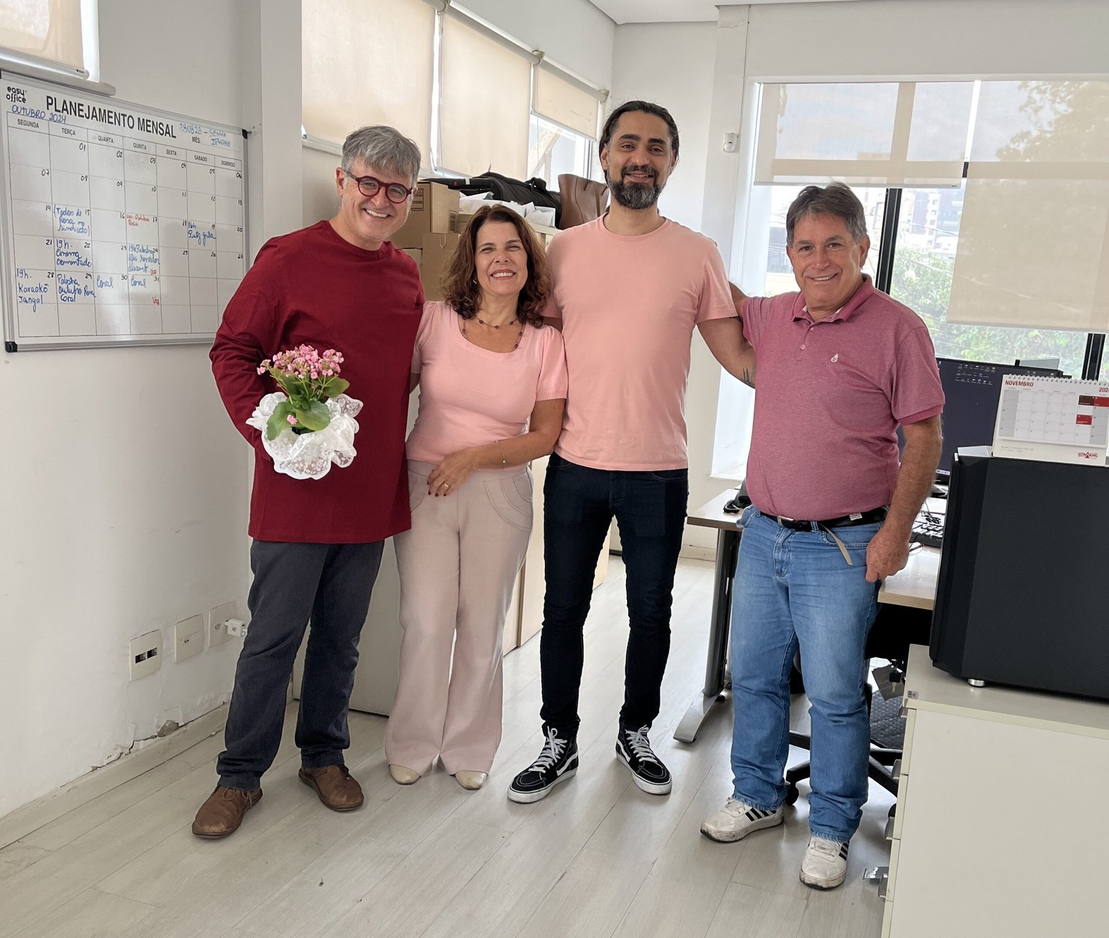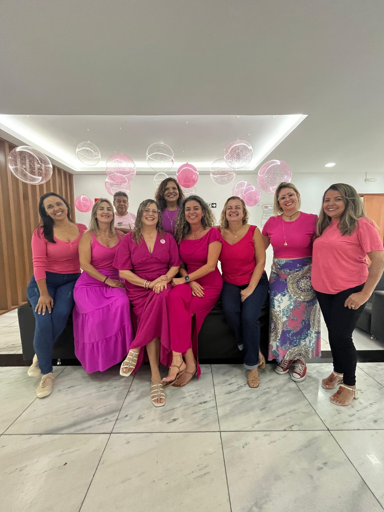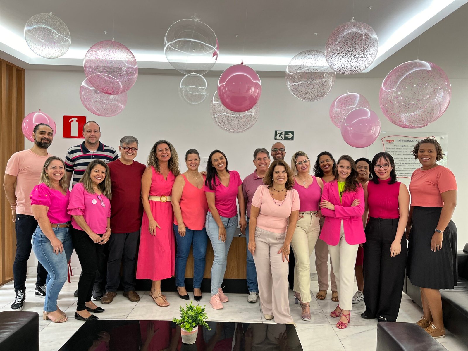Elas foram trabalhar usando roupa ou adereço com a cor rosa no intuito de chamar a atenção máxima para a saúde e o autocuidado. Os funcionários homens também abraçaram a ideia e participaram da ação de conscientização.