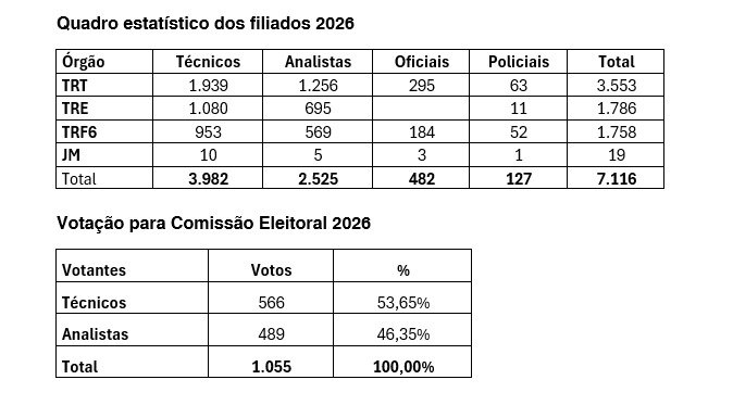 Pela amostra da votação ocorrida para Comissão Eleitoral 2026 é possível tirar diversas conclusões. Seguem algumas delas. Há muitas outras que merecem consideração em momento oportuno.