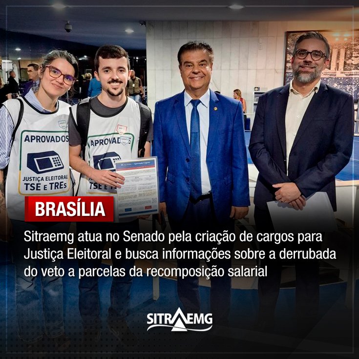 Uma caravana do Sitraemg, composta pelos coordenadores Paulo José da Silva, Luciana Tavares de Paula, Alexandre Magnus Melo Martins e Rosimare Alves Ribeiro Petitjean, além da também filiada Joana D Arc Carvalho Guimarães, estará em Brasília nesses três dias, participando das atividades de mobilização.