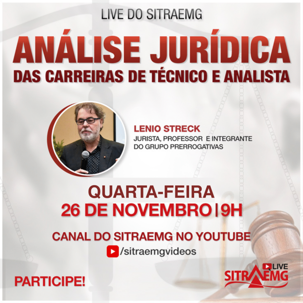 Sitraemg realizará live com Lenio Streck para debater a estruturação das carreiras