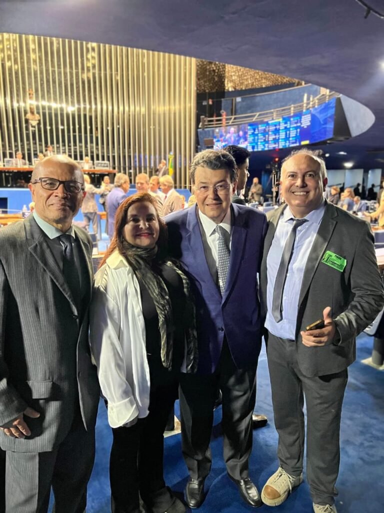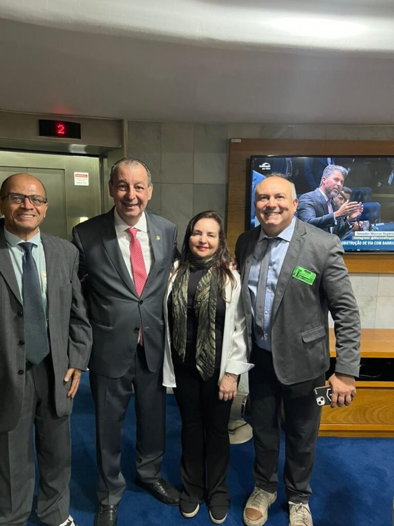 Os senadores Omar Aziz (PSD/AM), relator do PL 4750/2025, e Zequinha Marinho (Podemos/PA) fizeram questão de destacar o trabalho de mobilização realizado pelo Sitraemg ao longo de toda esta quarta-feira (26) no Senado Federal. “Parabéns a vocês pelo trabalho. Estamos aqui sempre abertos para receber com muito carinho. Eu sou paraense, mas o estado do Pará está cheio de mineiros, que nos ajudaram e nos ajudam muito na economia e no agronegócio, naquele grande estado”, disse Zequinha Marinho, ao lado dos coordenadores do sindicato Eliana Leocádia, Alexandre Magnus e Enilson Fonseca. Os representantes do sindicato também foram saudados e parabenizados pelo presidente da Casa, senador David Alcolumbre (União Brasil/AP), “pela luta responsável (do Sitraemg) pelos servidores do PJU no Brasil”.