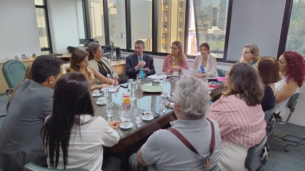 O Sitraemg foi representado pelas coordenadoras Alessandra Barbosa, Joana D’Arc Guimarães, Marjory Pereira de Sousa e Liana Theodoro Ferreira, além do advogado Rodrigo Messias Teixeira Campagnacci, da assessoria jurídica, e do psicólogo Arthur Lobato, do Departamento de Saúde do Trabalhador e Combate ao Assédio Moral (DSTCAM). Foram recebidos pela diretora-geral do Tribunal, Cassiana Lopes Viana; pela secretária de Gestão de Pessoas, Maria da Glória Araújo; pela titular da Seção de Gestão da Assistência Médica e Odontológica (Sameo), Daniela de Souza Rocha; pelo secretário administrativo, Rodolfo Pacheco; Deborah Maciel Corrêa, coordenadora de Atenção à Saúde; e Rosane Reis e Simone Costa Neves Alves, da Sedop.