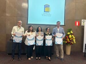 As coordenadoras Liana Theodoro, que também é servidora aposentada do TRE-MG, e Gabriela Santos Ahnert participaram da entrega de prêmios aos vencedores nas categorias Foto e Causos. Ainda participaram pelo Sitraemg a servidora do TRE-MG e representante do Conselho Fiscal Tâmisa Gonçalves.