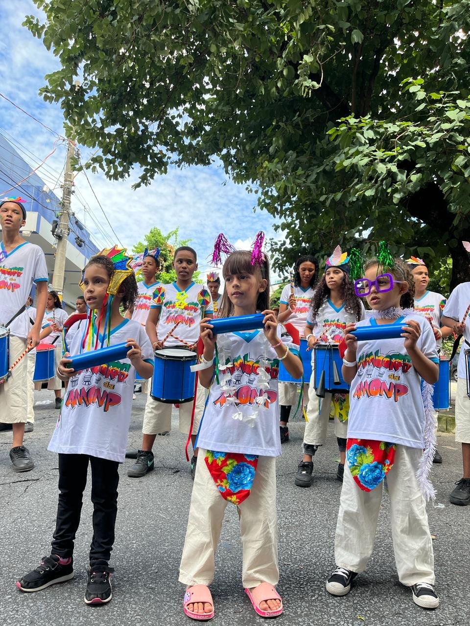 Logo depois os meninos da oficina de tambores Associação dos Moradores do Bairro Novo Progresso II (AMONP) deram um show de ritmo, encanto e vitalidade.