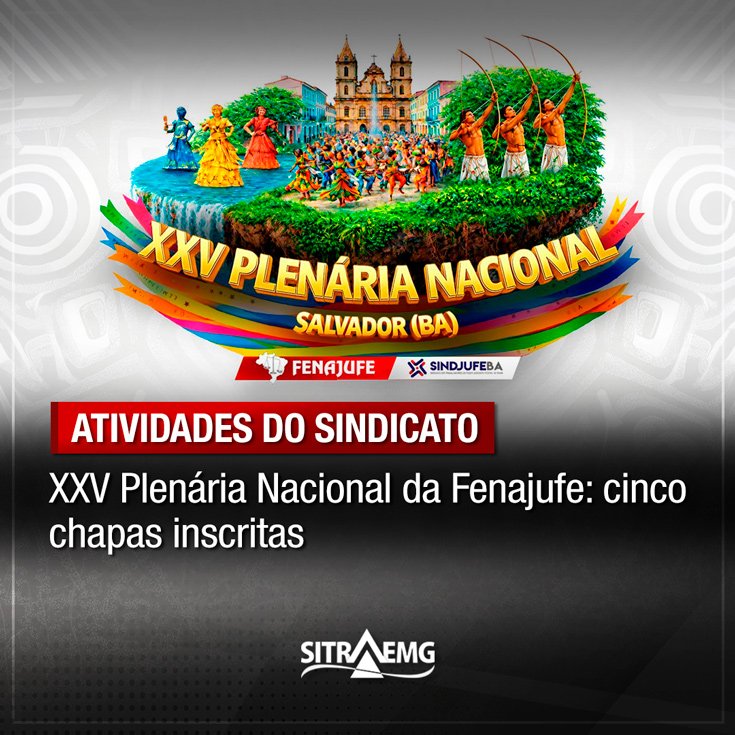 O Sitraemg realiza neste sábado, 11 de abril, assembleia geral extraordinária (AGE) para a eleição de delegados e observadores para a XXV Plenária Nacional da Fenajufe. O prazo para inscrições das chapas para concorrer foi até o dia 9 de abril (quinta-feira). Cinco chapas se inscreveram, confira abaixo: